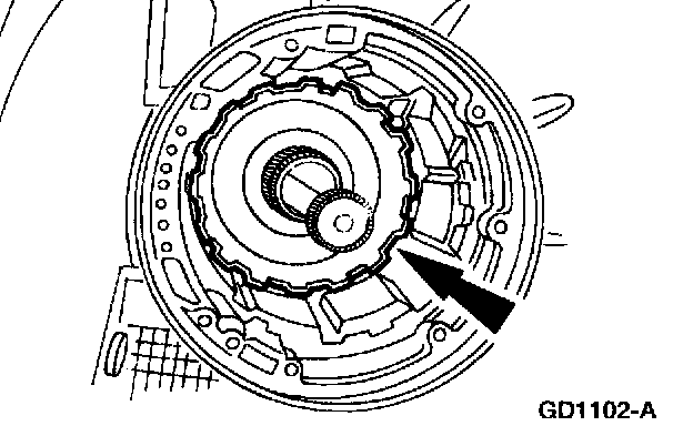 38. CAUTION: Remove the assembly carefully to prevent damage to the overdrive band friction material by the reverse clutch drive lugs.