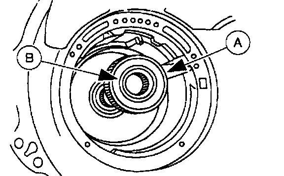 42. Rotate the (A) reverse sun gear to align with the (B) overdrive band anchor pin.