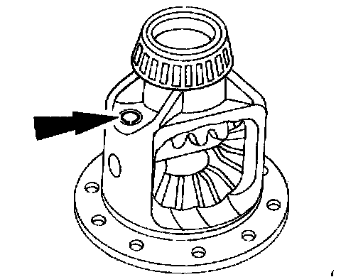 4. CAUTION: The upper differential side gear may fall out of the case bore after removing the differential pinion gears.