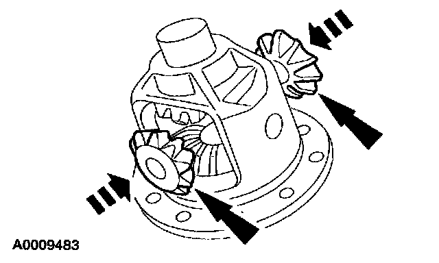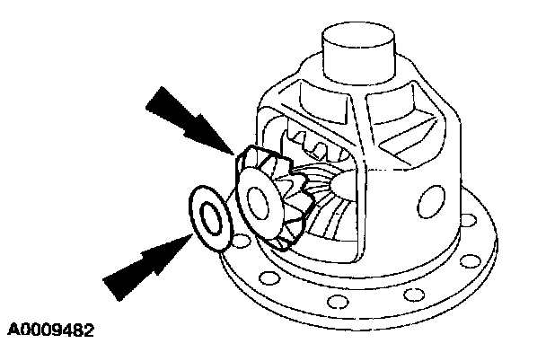 5. Remove the differential side gears and the differential side gear thrust washers.
