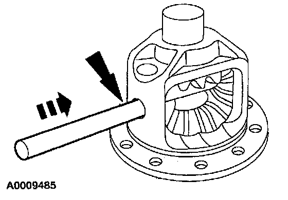 2. Drive out the differential pinion shaft roll pin.