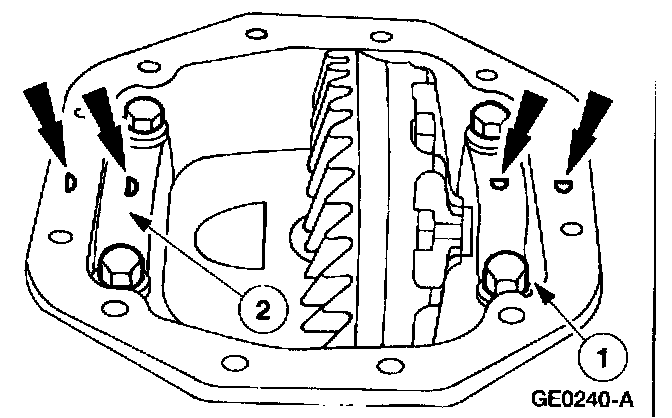 10. CAUTION: The matched numbers or letters stamped on both of the differential bearing caps and the differential housing must correspond during assembly.