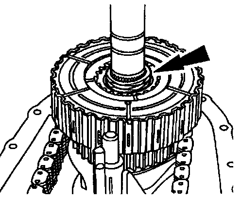 24. CAUTION: When removing or installing the clutch pack assembly, do not separate the clutch pack assembly. Keep tension on the clutch pack upon removal. Set the clutch pack assembly on the bench in the same position, as it was located in the transfer case. The thrust washer in the lower clutch pack uses tabs to hold it in place. If the thrust washer is not in place, a transfer case clearance problem can occur.