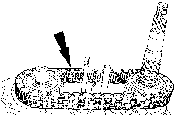 26. Remove the drive chain and the sprockets as an assembly.