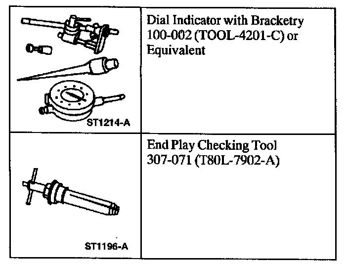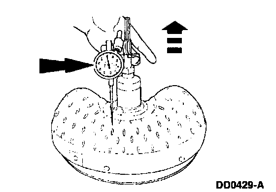 3. Lift up on the End Play Checking Tool as far as it will move and note the dial indicator reading.