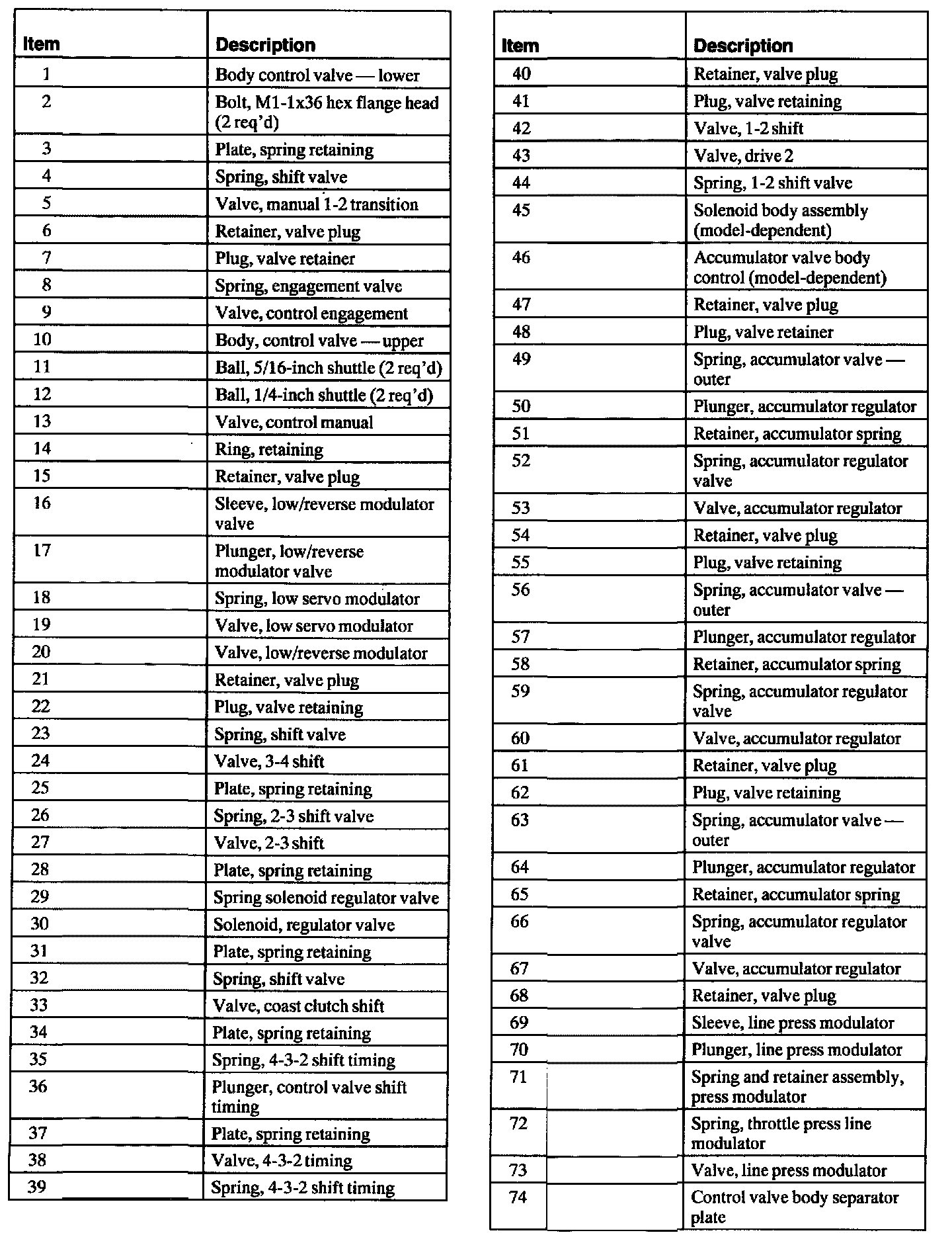 Upper, Lower, Accumulator, and Solenoid Bodies, Disassembled View