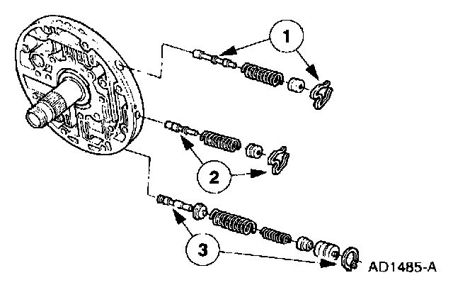 1. Install the main regulator valve and sleeve assembly, converter clutch shift valve assembly, and the converter regulator valve assembly.