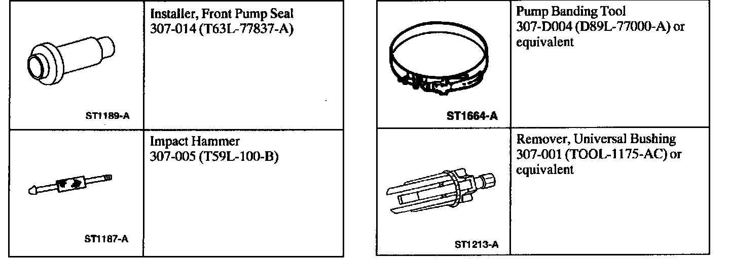 10. If removed, install the front pump seal, using the special tool 307-014 (T63L-77837-A).