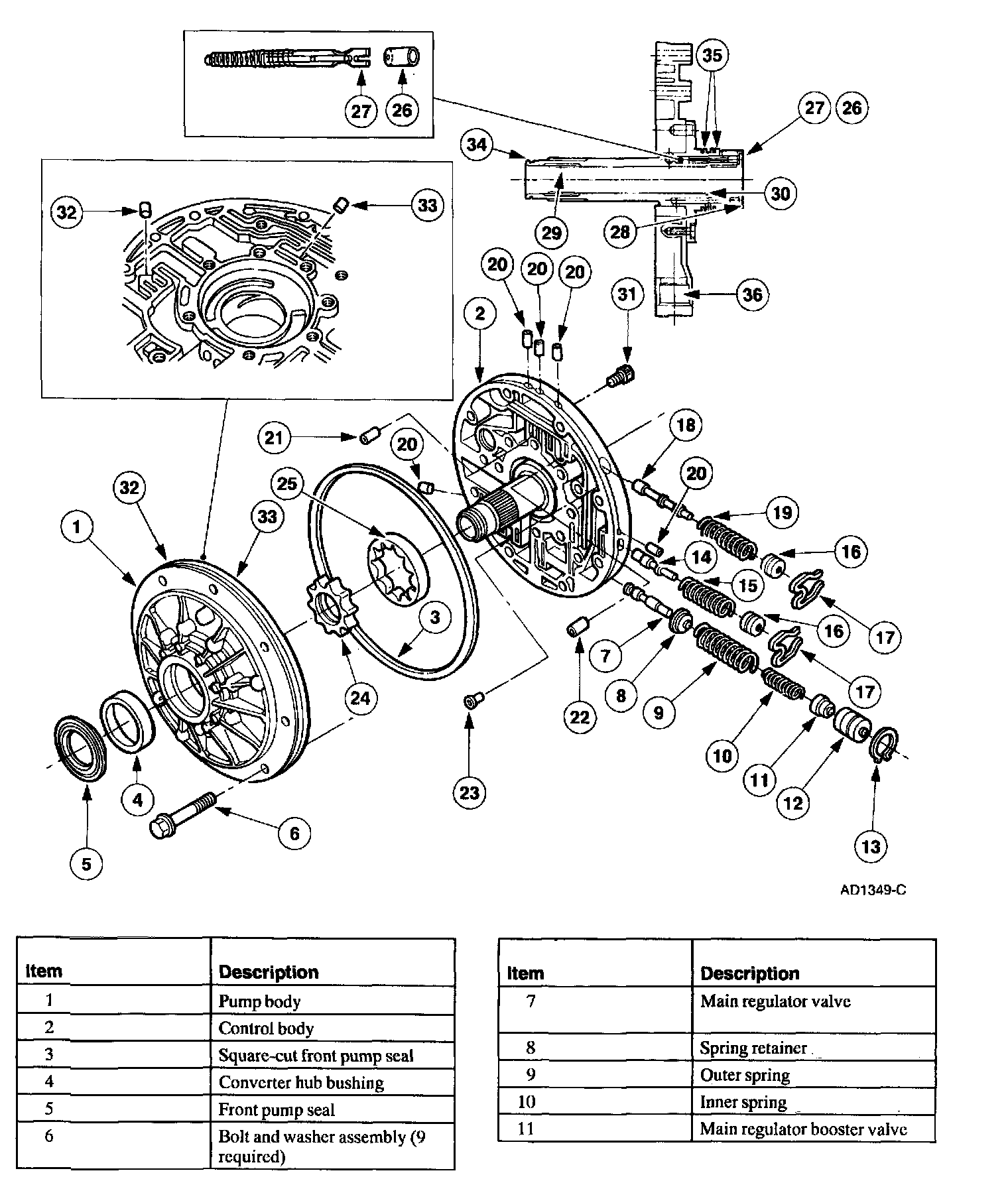 1. Note: Inspect and replace the front pump seal, if damaged.