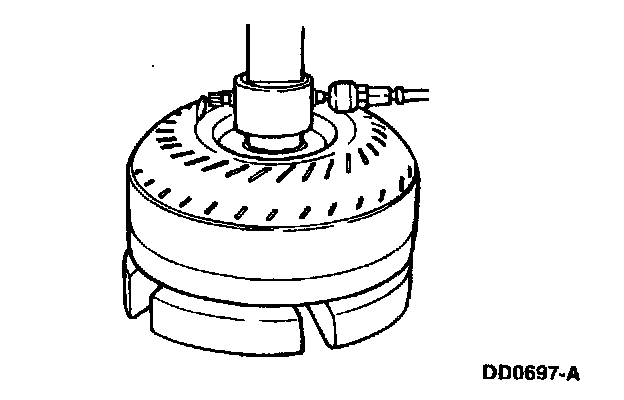 5. With air pressure applied to the valve, inspect for leaks at the converter hub, the seams and the studs. A soap bubble solution can be applied around those areas to aid in the diagnosis. If any leaks are present, replace the converter.
