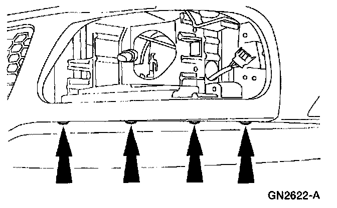 - Use the locating notch to position the radiator grille on the radiator grille opening panel reinforcement.