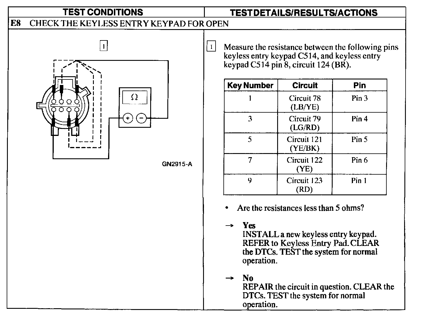 Test E: Doors Do Not Lock/Unlock Using the Keyless Entry Keypad