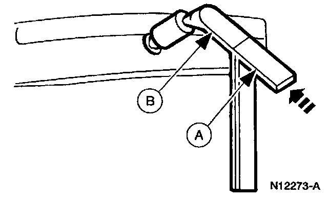 1. Insert (A) Rear View Mirror Remover into the mount on the (B) inside rear view mirror.