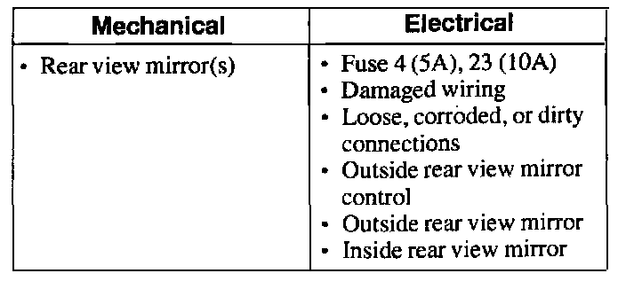1. Verify the customer concern by operating the power outside rear view mirrors.VISUAL INSPECTION CHART