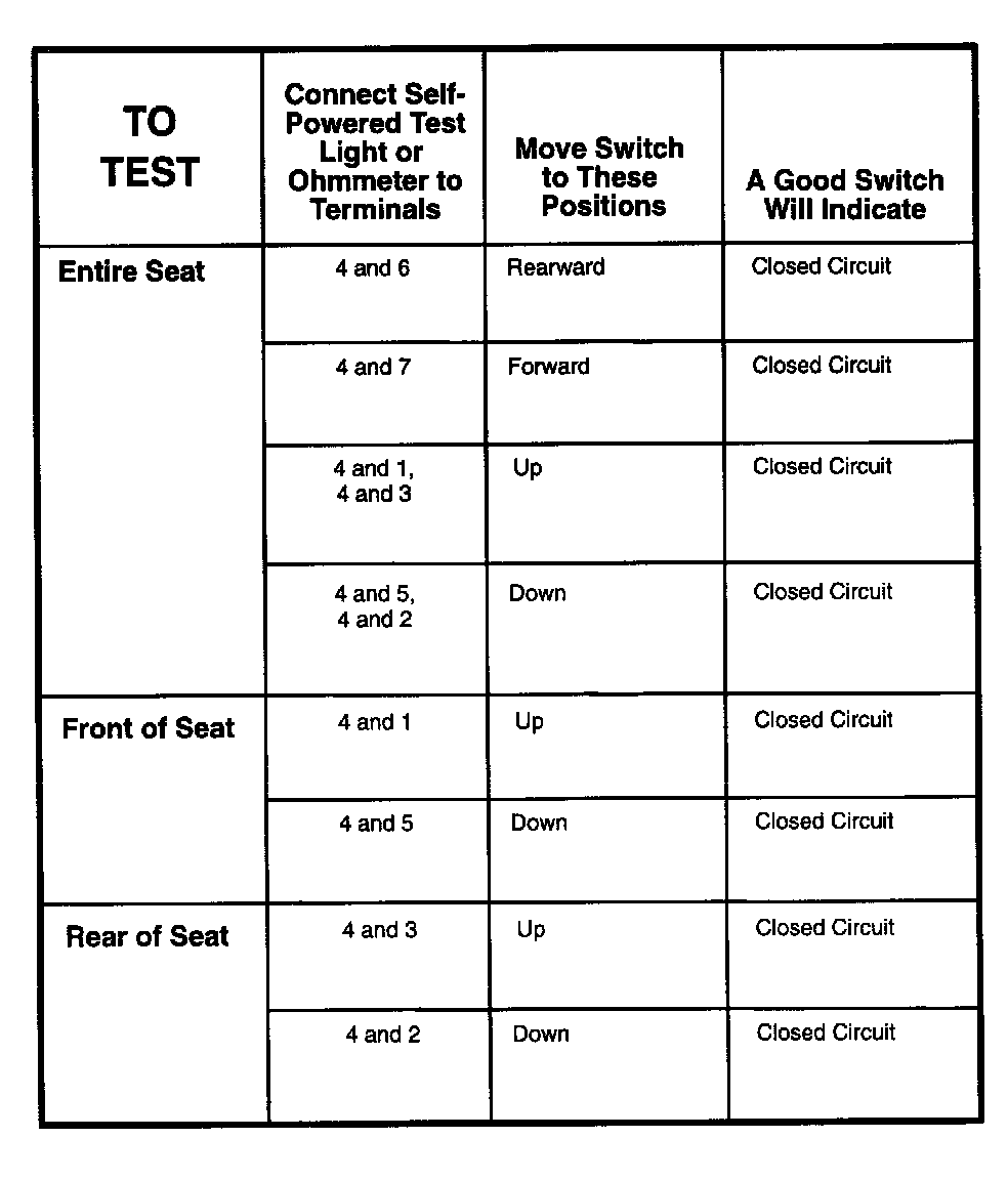 Power Seat Switch: Testing and Inspection