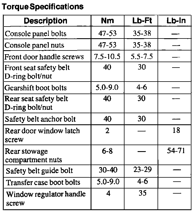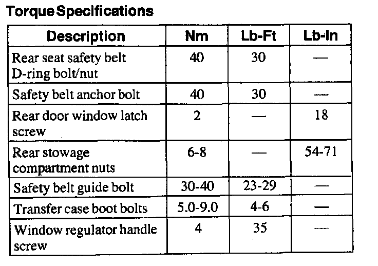 Torque Specifications: