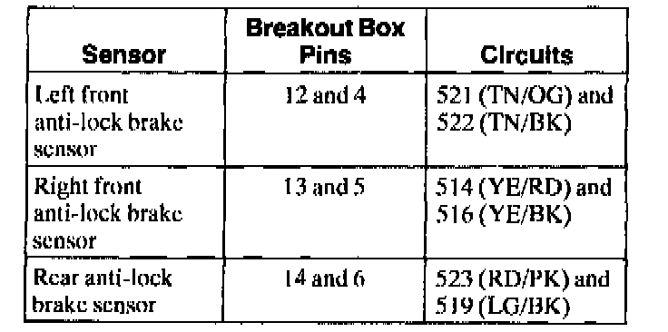 Monitor the resistance between suspect anti-lock brake sensor pins (component side) while wiggling the electrical connector: