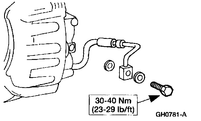 ^ Use new copper washers; connect the front brake hose.