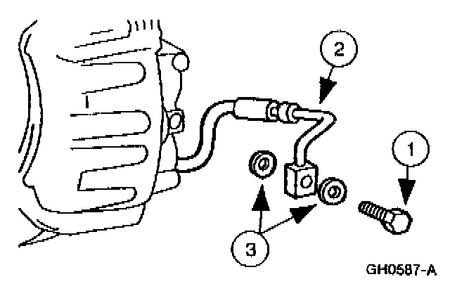 3. Remove and discard the copper washers. Plug the front brake hose.