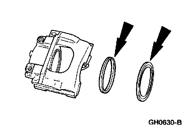 2. Apply low air pressure to the fluid port in the rear disc brake caliper.