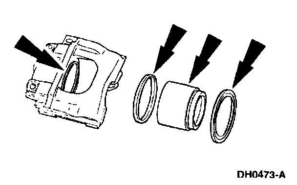 5. Note: Do not hone the cylinder bore. Pistons are not available for honed cylinder bores. If the rear disc brake caliper cylinder bore/piston is excessively scored or corroded, install a new rear disc brake caliper.