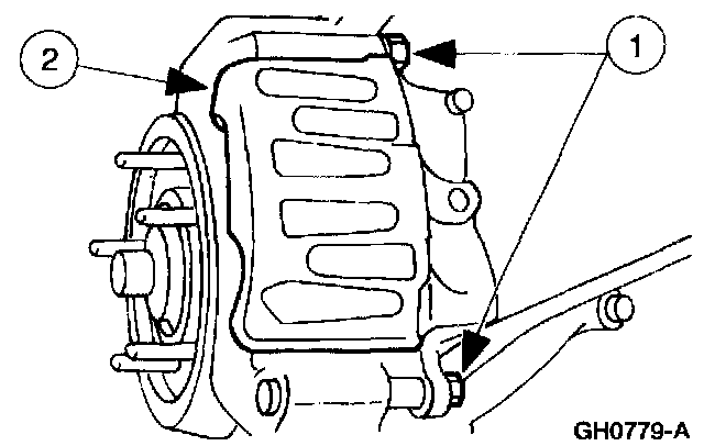 1. Remove the two disc brake caliper bolts.