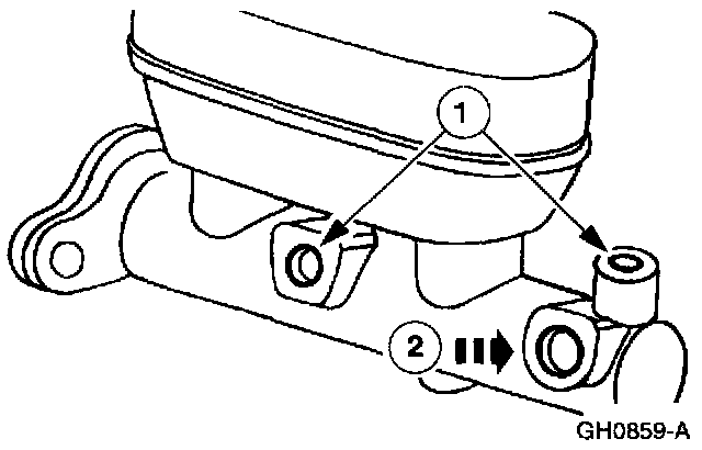 1. Plug the rear outlet port and, if necessary, plug the brake pressure switch port.