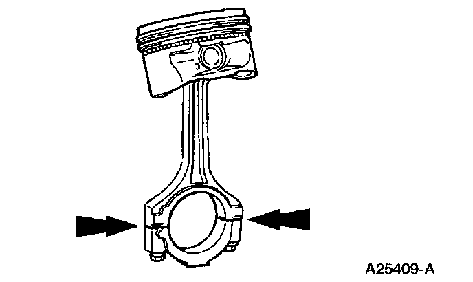 2. Note: If the connecting rod large end is mechanically split or cracked to produce a unique parting face, a locking joint is produced. Parts are not interchangeable.