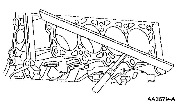 Use a straightedge and a feeler gauge to inspect the cylinder block for flatness. If the cylinder block is distorted, resurface the cylinder block within specification.
