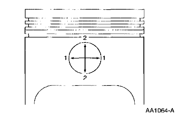 Measure the piston pin bore diameter in two directions on each side. Verify the diameter is within specification.