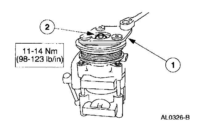 CAUTION: Do not use air tools. The A/C clutch field coil can be easily damaged.