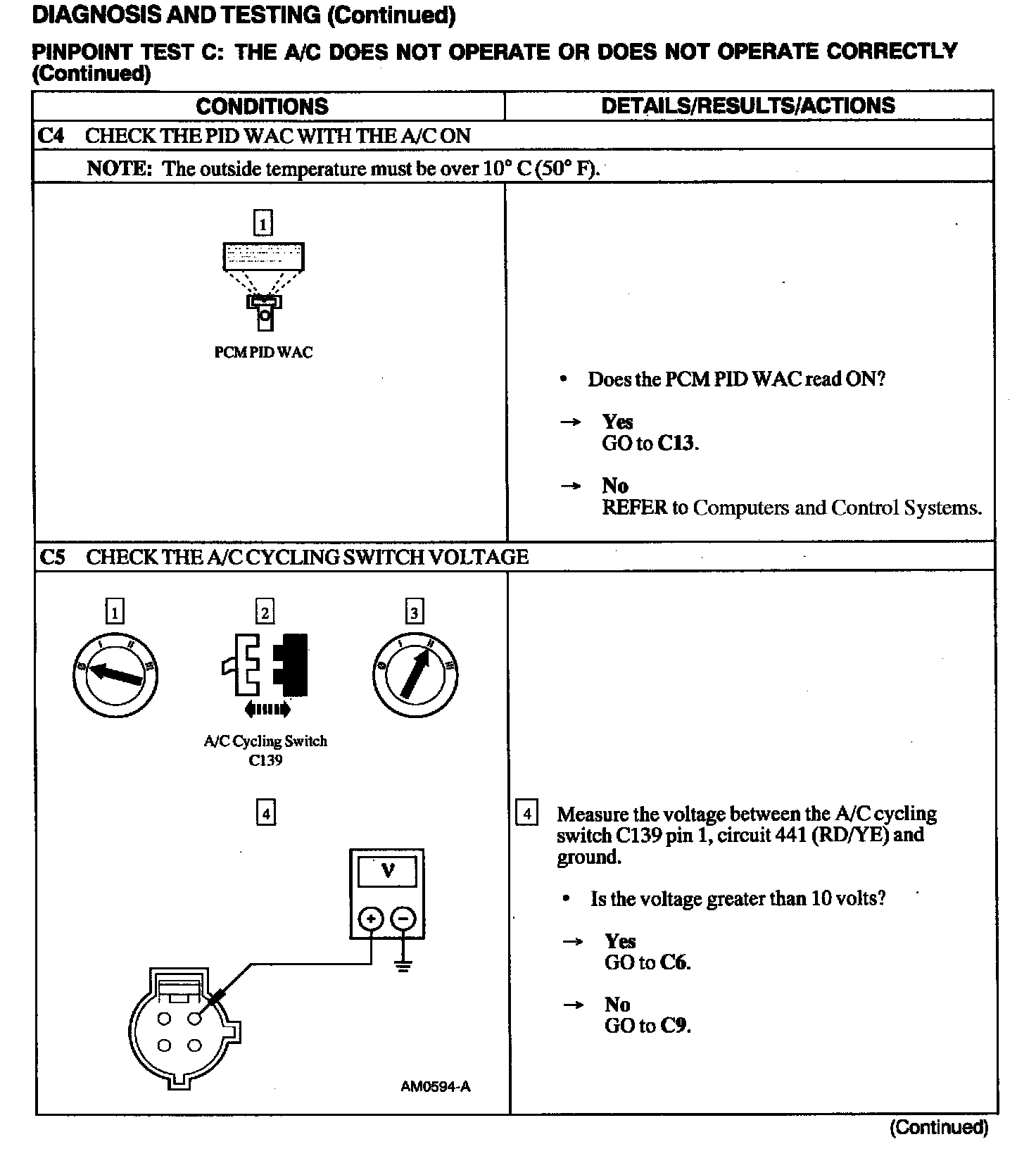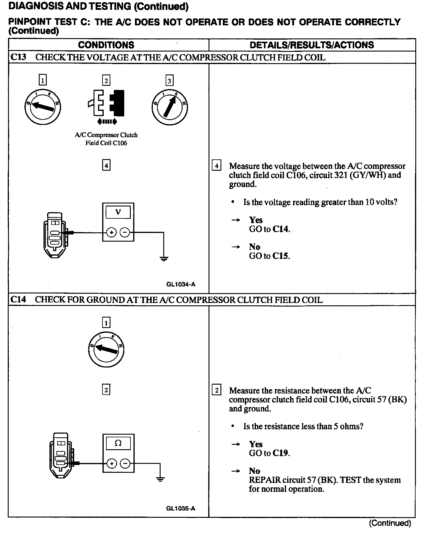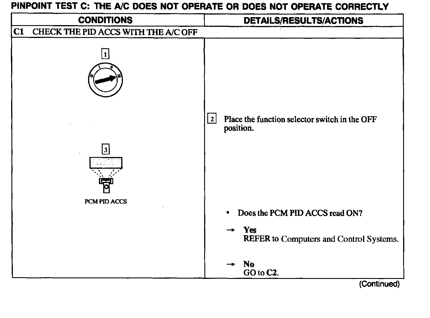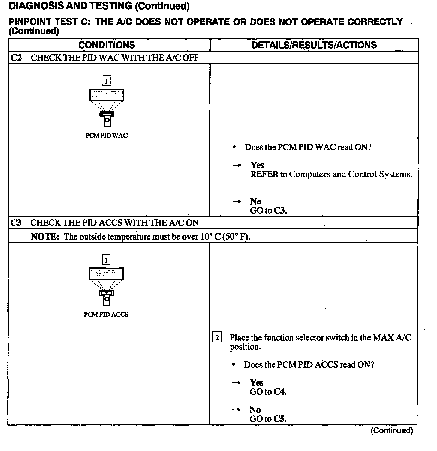 Test C: A/C Does Not Operate or Does Not Operate Correctly