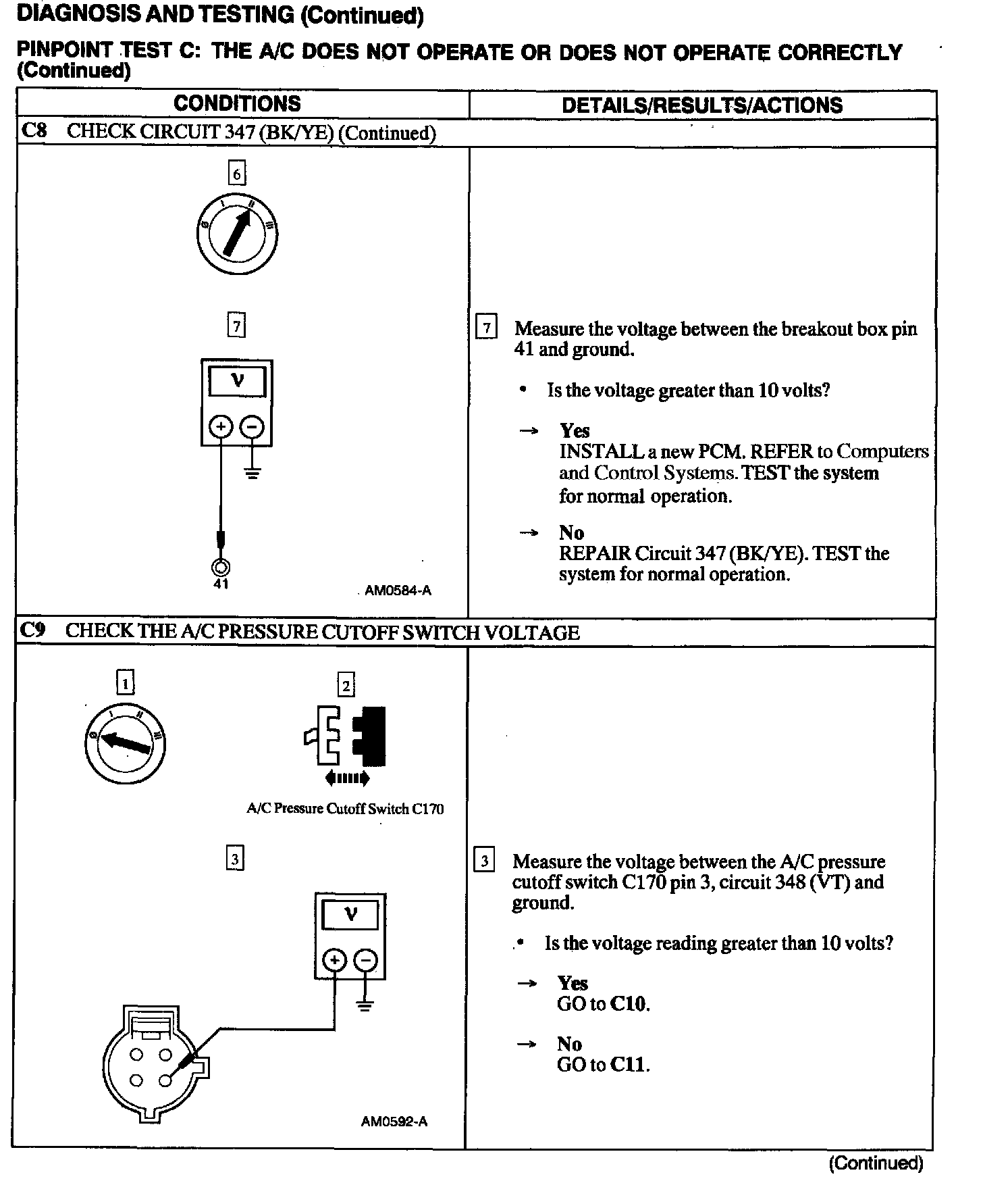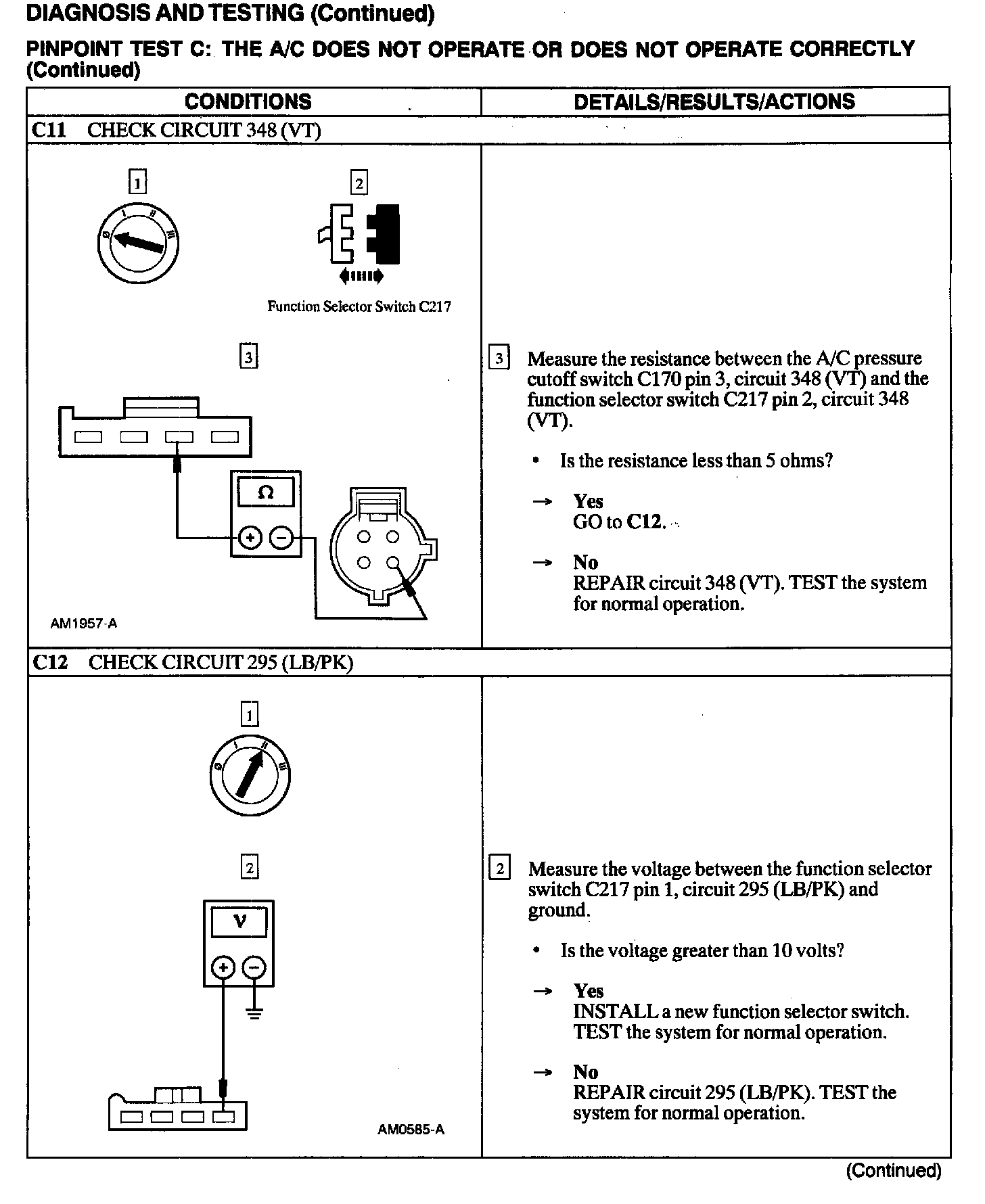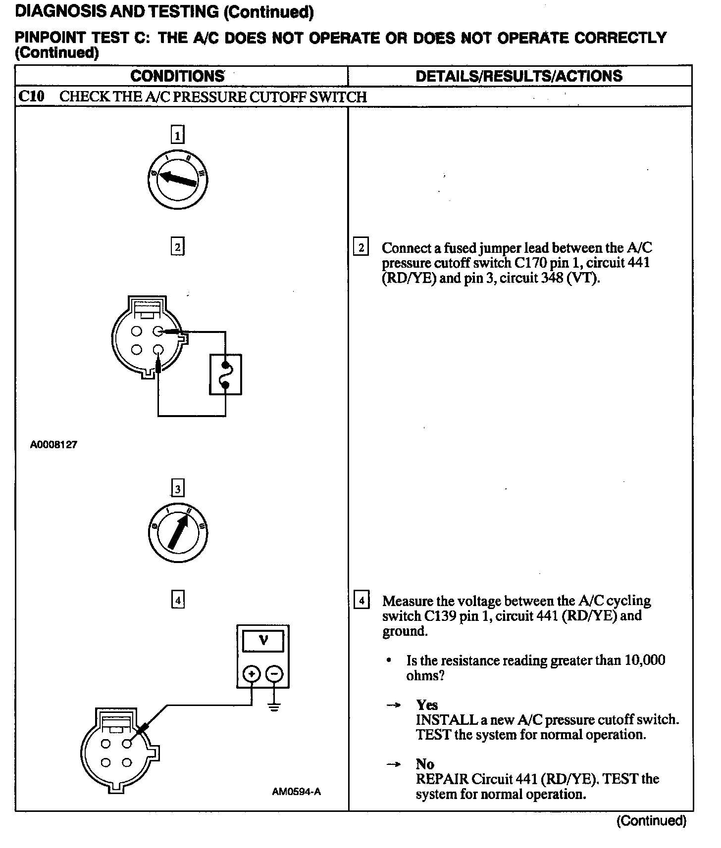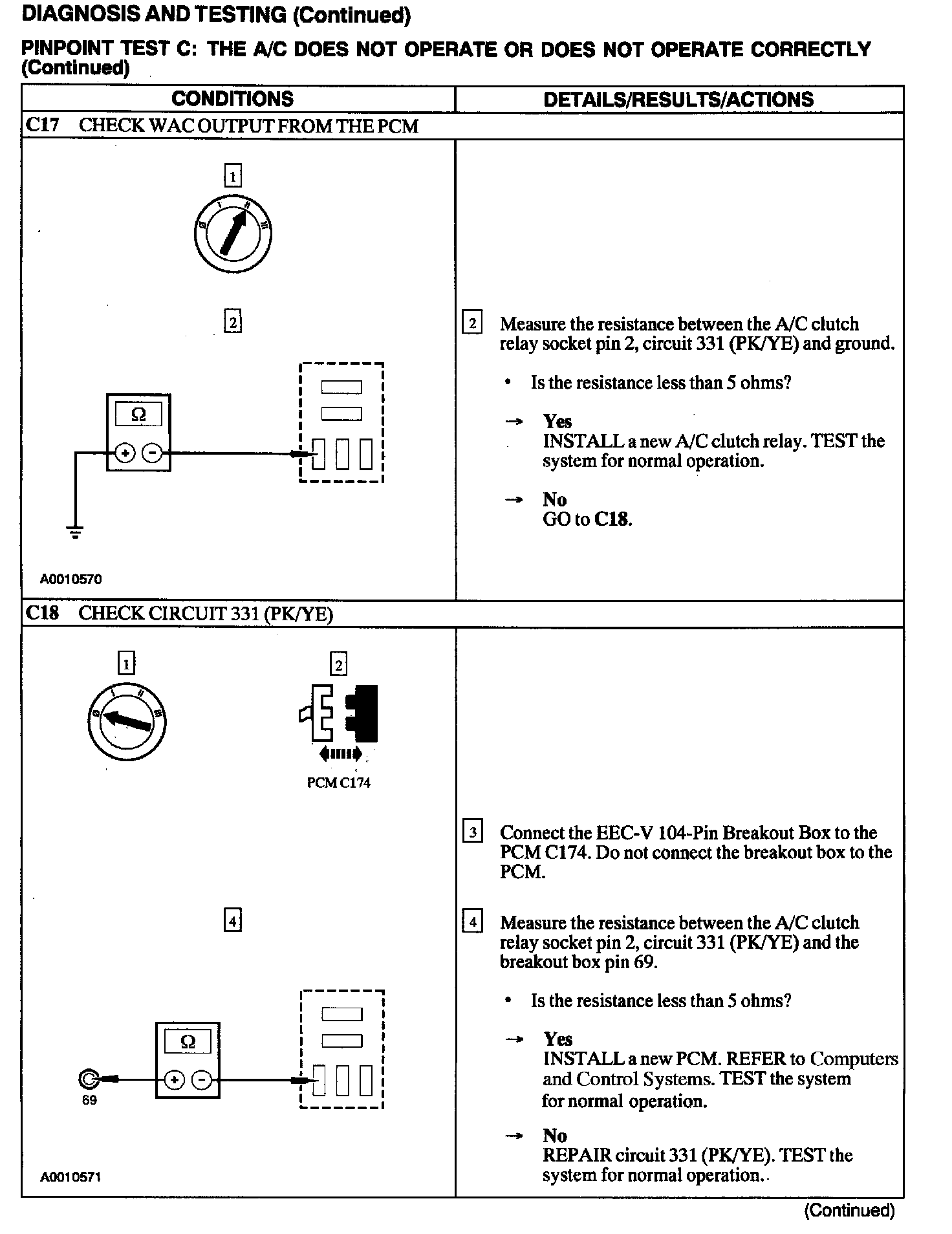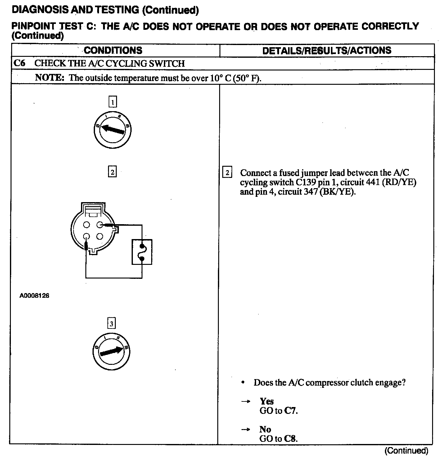 Test C: A/C Does Not Operate or Does Not Operate Correctly