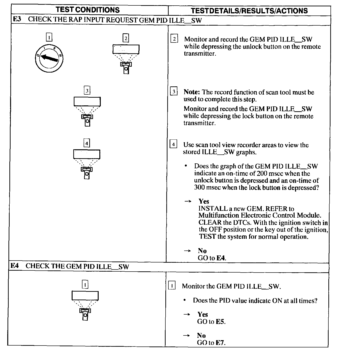 Test E: Illuminated Entry Inoperative Using Remote Transmitter