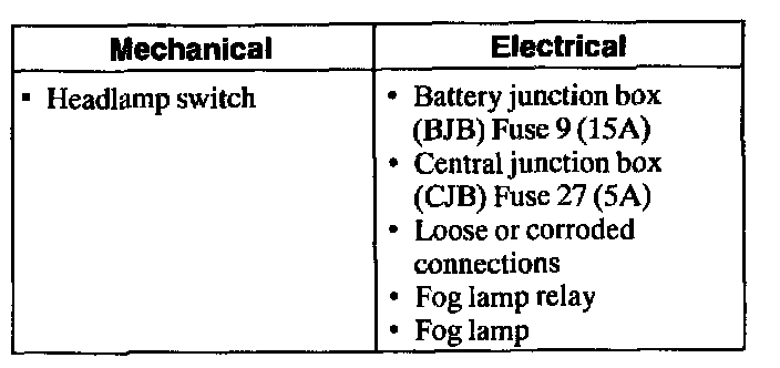 1. Verify the customer concern by operating the fog lamps.VISUAL INSPECTION CHART