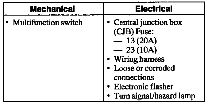 1. Verify the customer concern by operating the turn signal/hazard lamps.VISUAL INSPECTION CHART