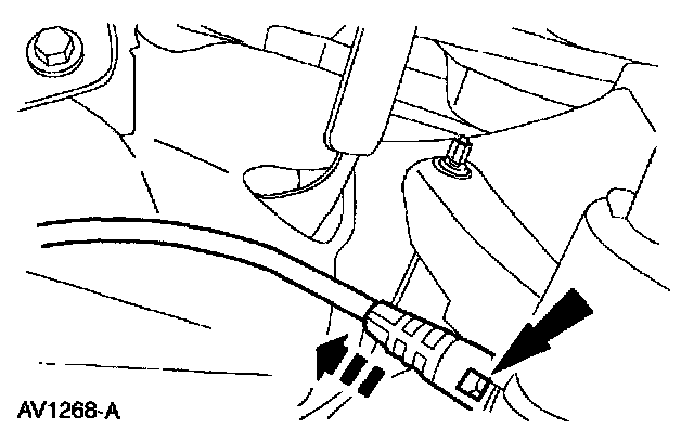 REMOVAL1. Depress the locking tabs on the accelerator pedal drive cable and remove the drive cable from the accelerator pedal assembly.