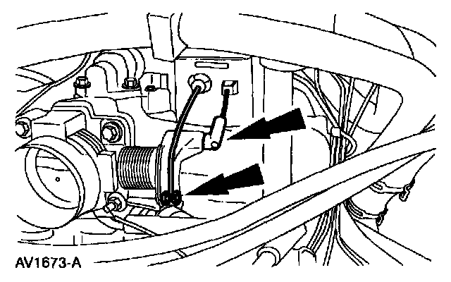 4. Remove the accelerator cable and, if equipped, the speed control actuator cable.