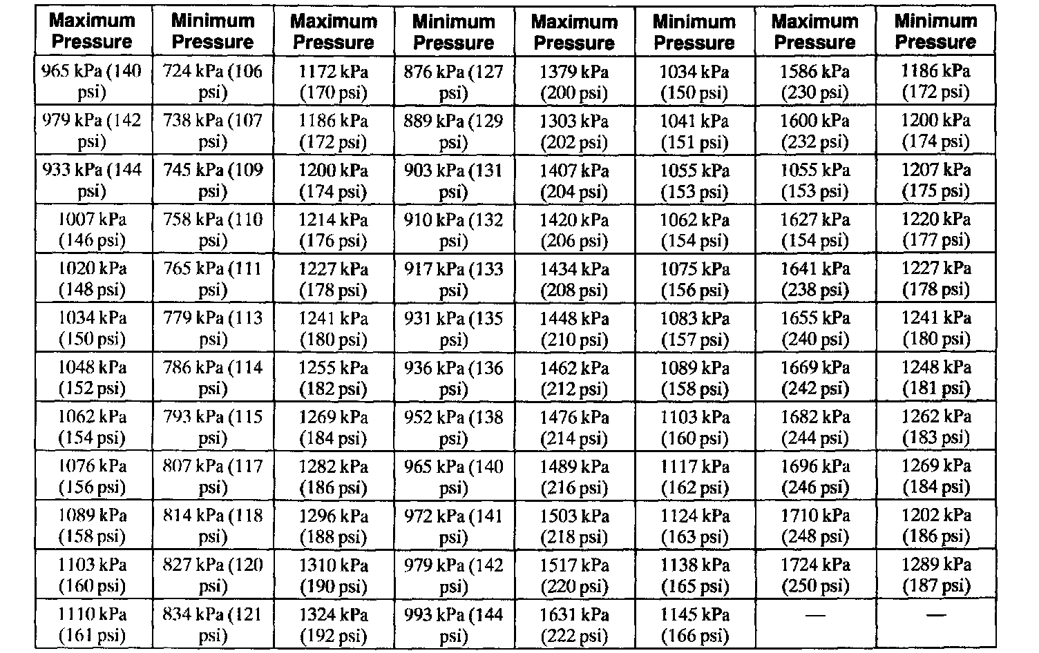 Use the Compression Pressure Limit Chart when checking cylinder compression so that the lowest reading is within 75 percent of the highest reading.