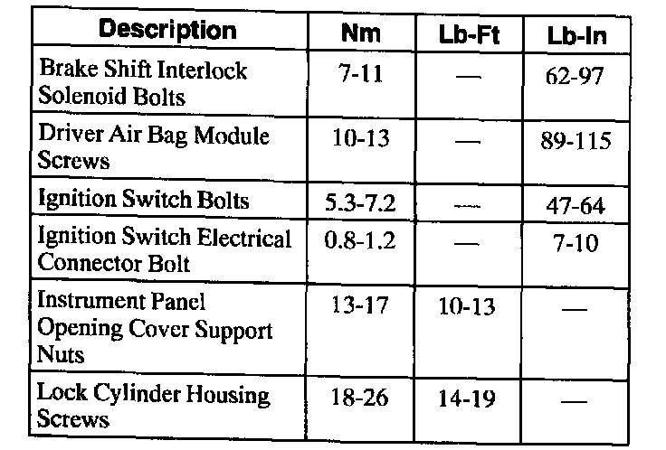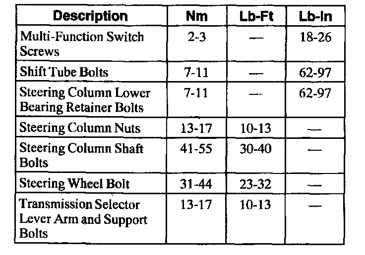 Torque Specifications