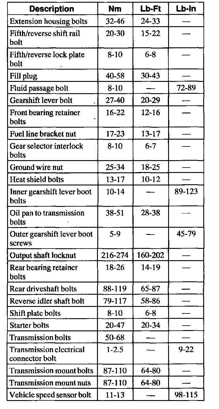 Torque Specifications