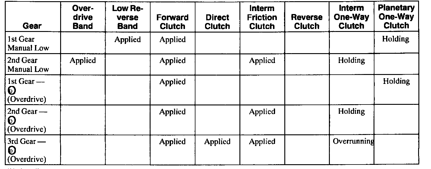 Band/Clutch Application Chart 601