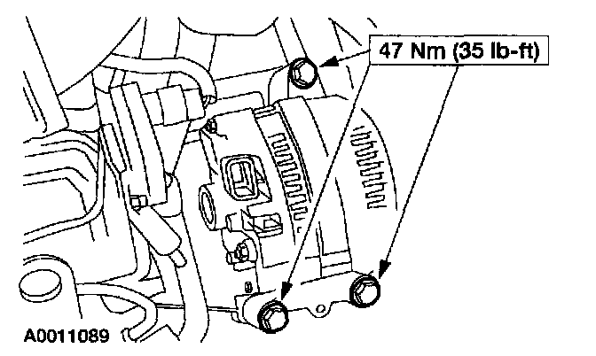 2. Remove the drive belt. For additional information, refer to Drive Belts, Mounts, Brackets and Accessories.