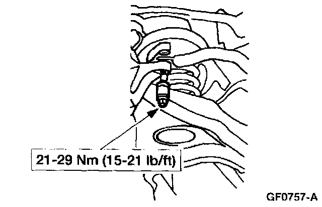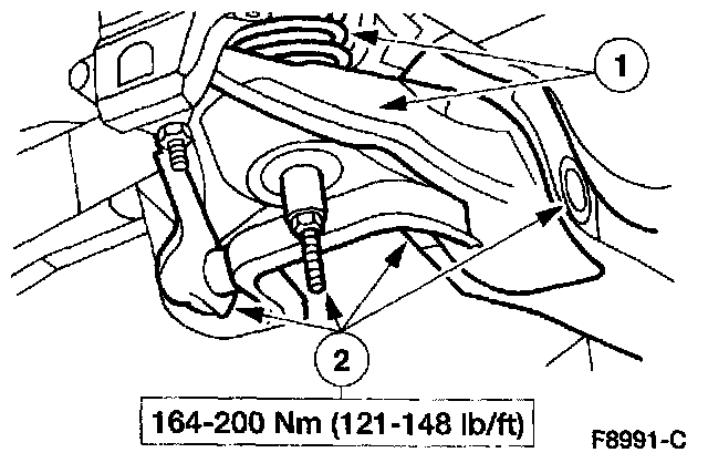 2. Note: The forward front suspension lower arm nut must be tightened first while the control arm is held at the curb position ride height.