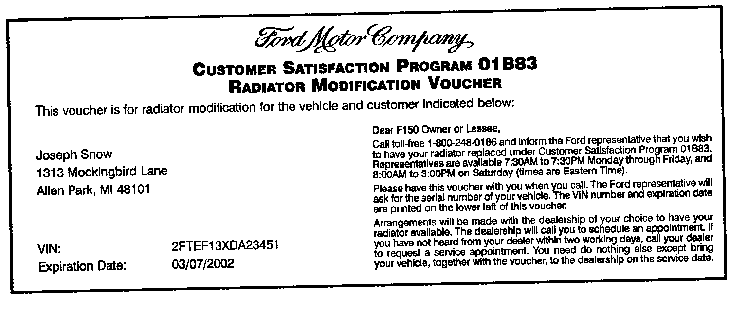3. Be sure the Radiator Modification Voucher is attached to the repair order and filed in accordance to the record keeping policy published in the Warranty and Policy manual.