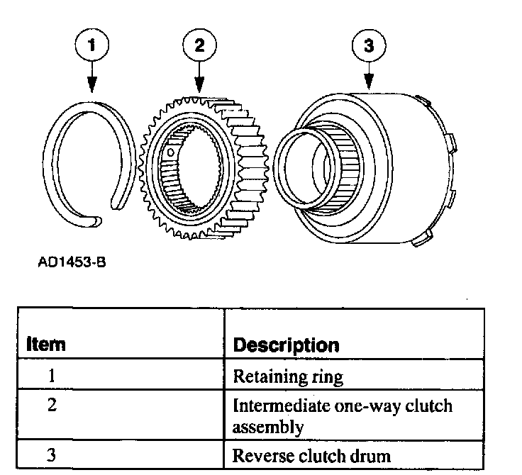 Note: The intermediate one-way clutch must rotate counterclockwise when installed on the reverse clutch drum and will make a ratchet sound.