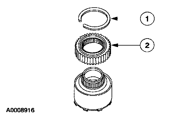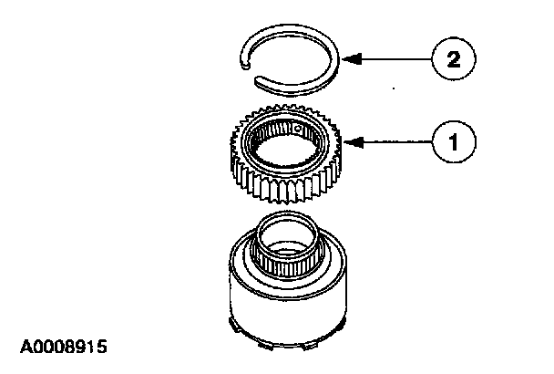 1. Note: For ease of assembly, the chamfer on the intermediate one-way clutch splines should face upward.