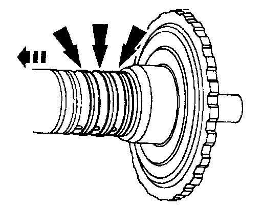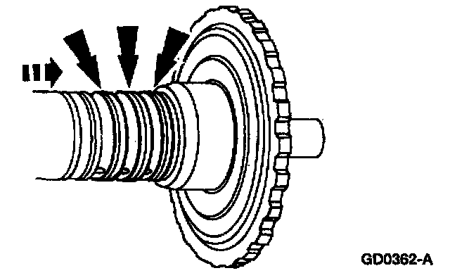 12. Check the clutch hub thrust surfaces for scores and clutch hub splines for wear.