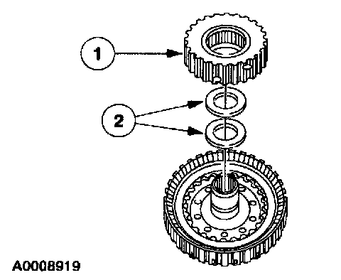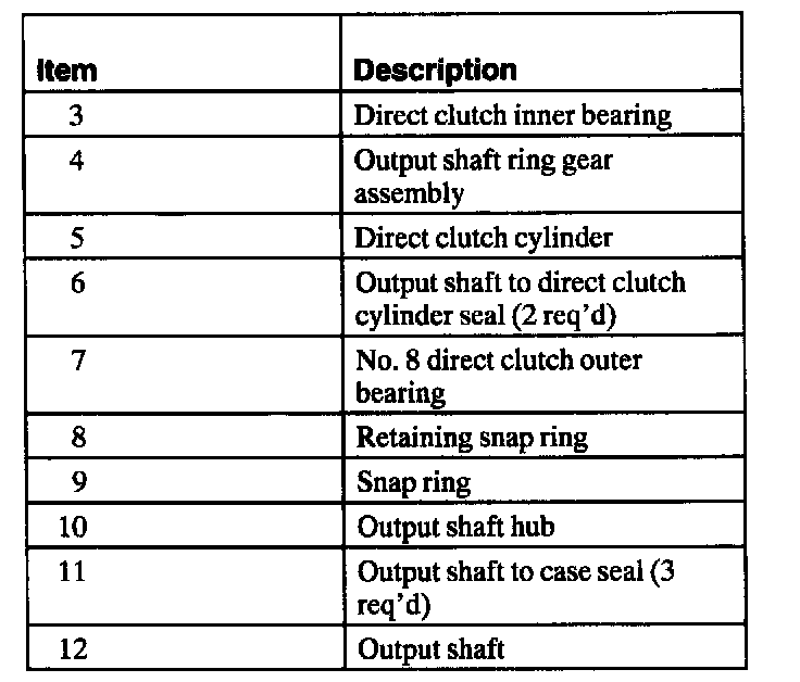 13. Note: Direct clutch cylinder may be installed after the output shaft ring gear is installed to the output shaft hub.