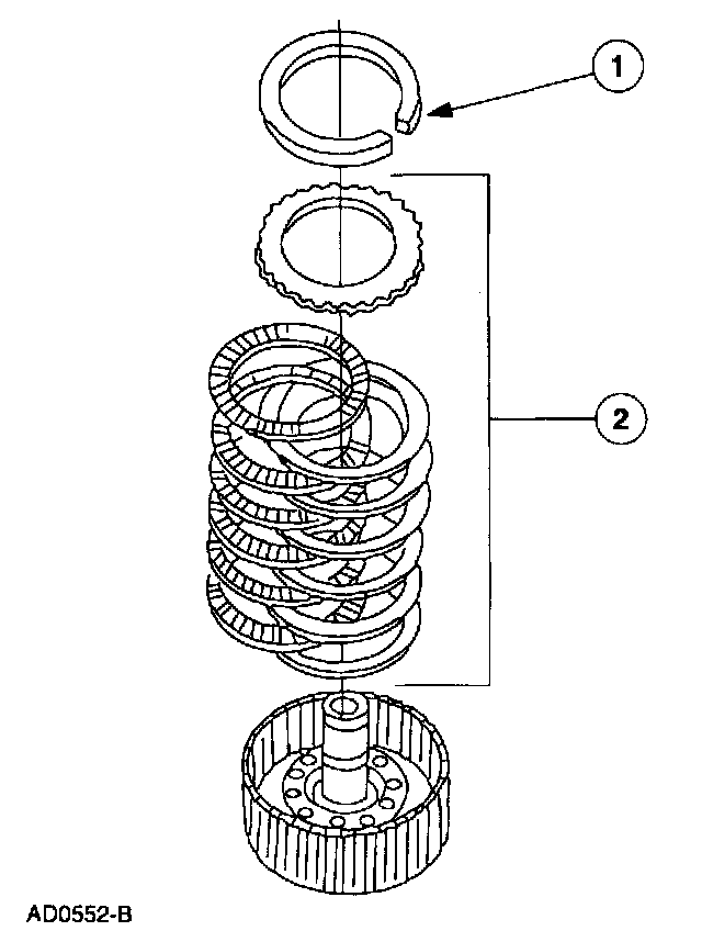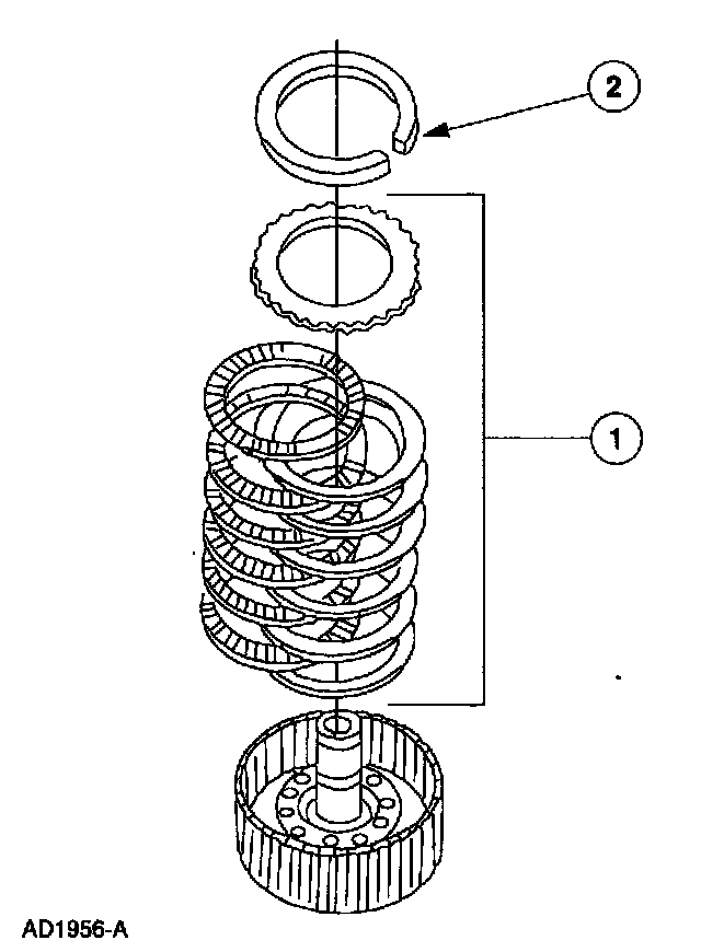 1 Alternate external spline (steel) plates and internal spline (friction) plates, starting with a steel plate and ending with the friction plate.